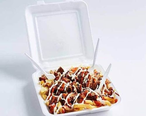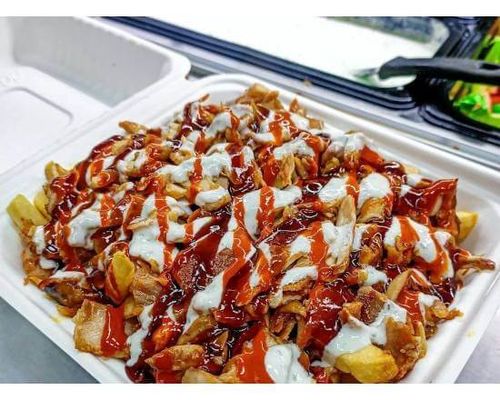 Kebab meat with chips and sauce